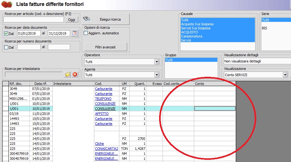 Buongiorno, quando carichiamo l'elenco delle fatture fornitori spesso controlliamo la corretta attribuzione del mastrino (MERCI C/ACQUISTI, SPESE TELEFONICHE, CARBURANTE, CONSULENZE, ...)