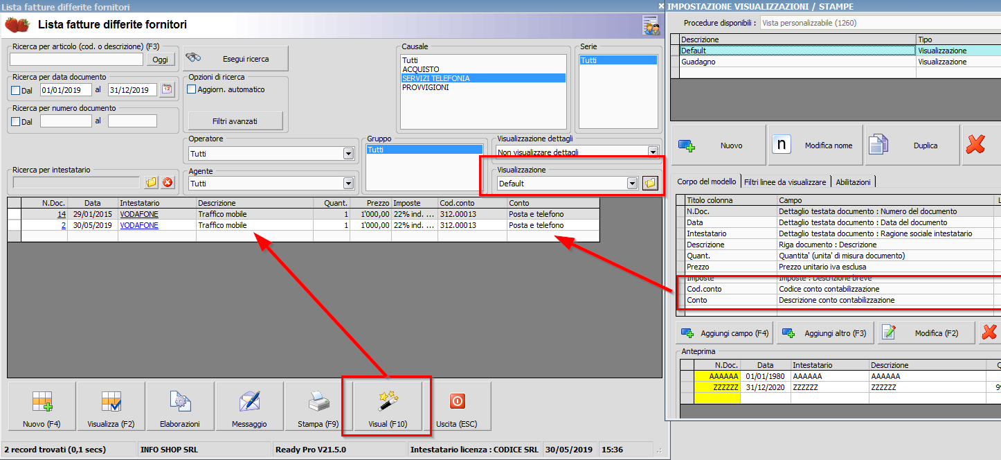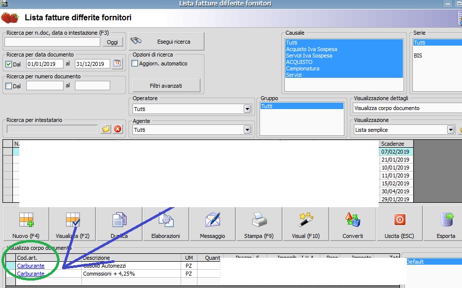 In questo modo potremmo verificare che tutti i mastrini SERVIZI siano correttamente attribuiti alle fatture relative, semplicemente scorrendone l'elenco e controllando in questa finestra, e non più dovendo entrare documento per documento