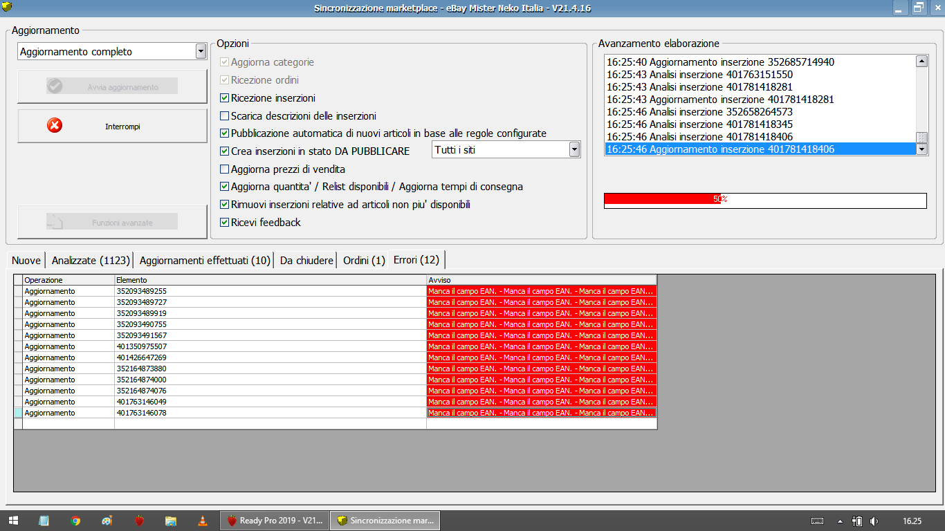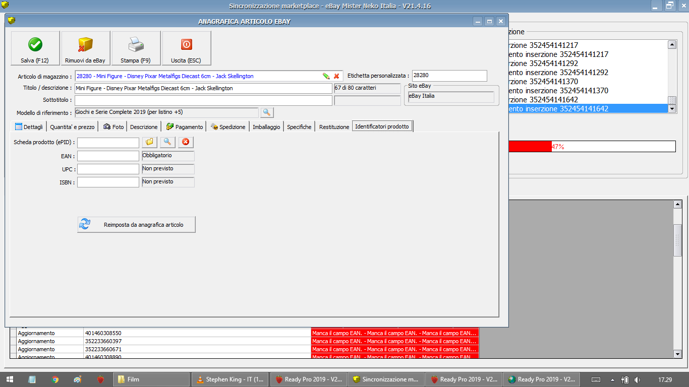 Non era mai successo: parliamo di articoli che erano su eBay già da tempo. Si tratta di articoli che non hanno codice EAN: finora da anagrafica articolo veniva segnalato "non applicabile".