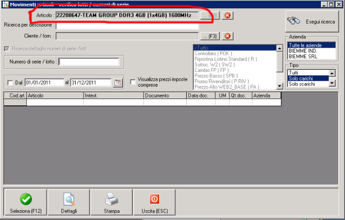 Da ieri se sulla schermata di cui parlo sopra, leggo un seriale di un prodotto qualsiasi (invece di quello che ho selezionato in fattura), mi modifica il campo ARTICOLO con quello che ho effettivamente in mano e mi visualizza la fattura relativa all'articolo "errato".