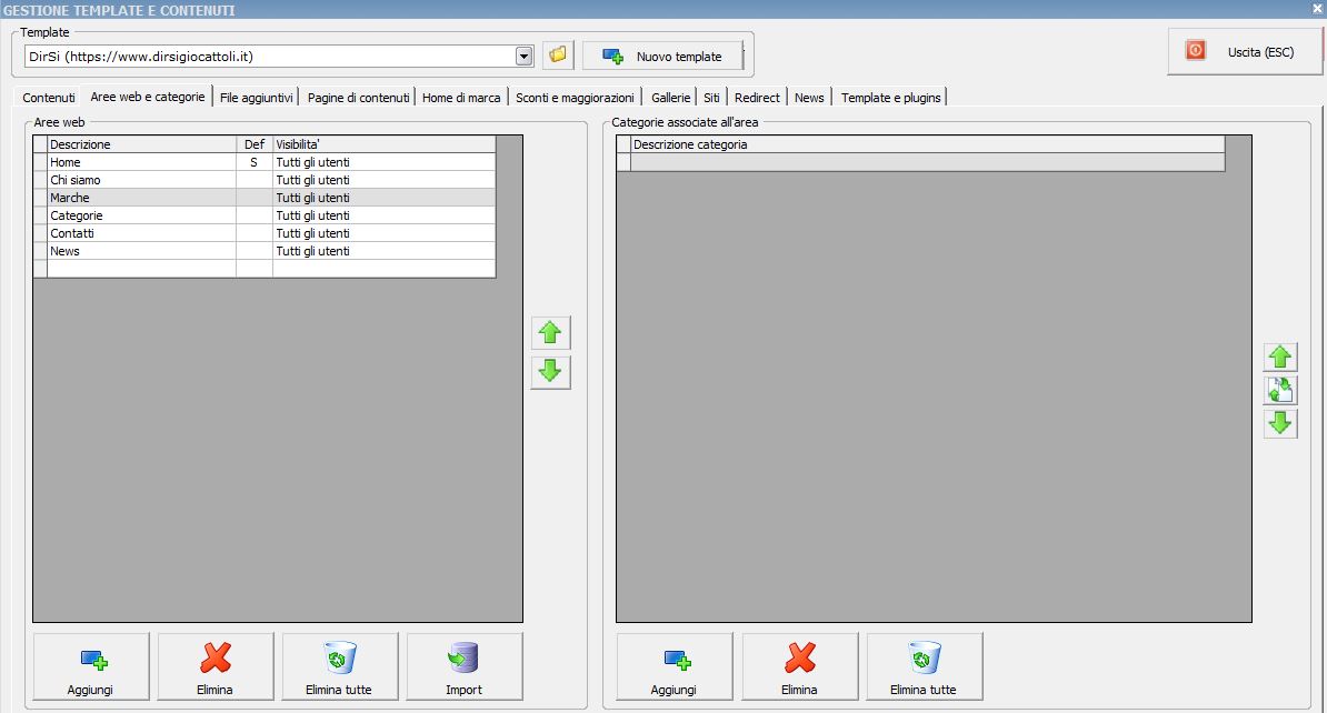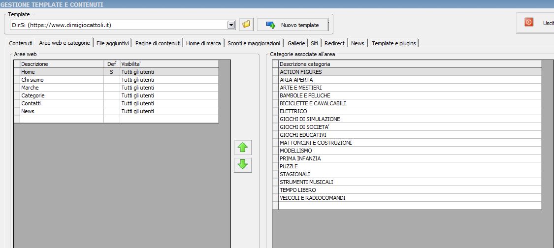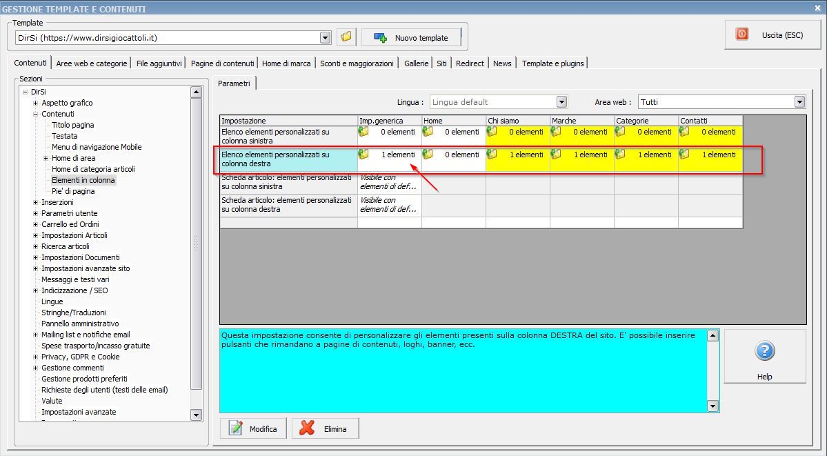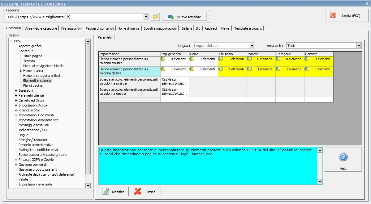 Purtroppo i caroselli non sono gestibili tramite le pagine personalizzate. Quindi ti direi di mantenere la pagina di contenuti come avevi fatto. Per eliminare le categorie dalla colonna laterale puoi nasconderle tramite l'apposita opzione "Visualizzazione categorie articoli". Ti bastera' impostarla su "Non visibile" in corrispondenza dell'area Home.