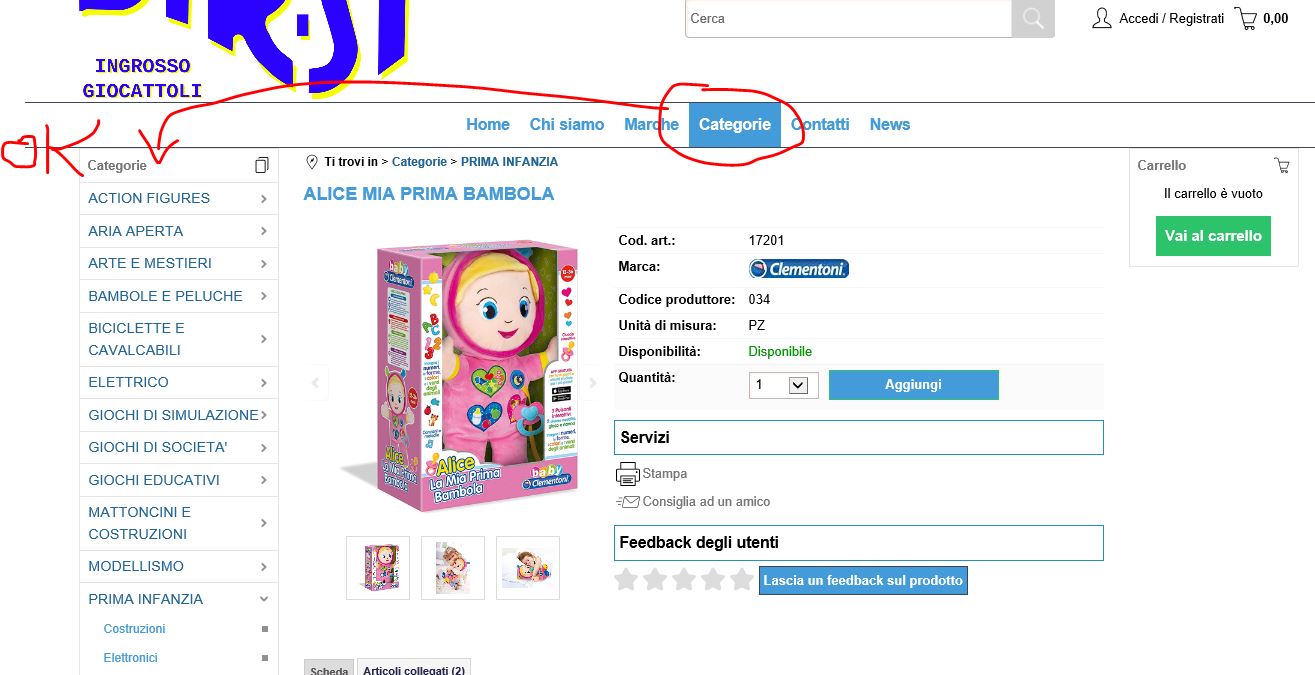 se invece vado in categorie dalla barra dei menu e da li cerco il prodotto, la colonna categorie compare