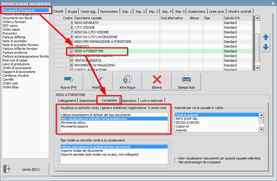 Altrimenti una alternativa è di usare per quelle DDT un codice pagamento che non genera scadenze. Oppure si può completamente disattivare la generazione delle scadenze, ed anche la visualizzazione nell'estratto conto per quella causale (ma io lo sconsiglierei perchè si rischia di perdere l'evidenza e traccia di quel reso se per qualche motivo la nota di credito non dovesse poi arrivare)