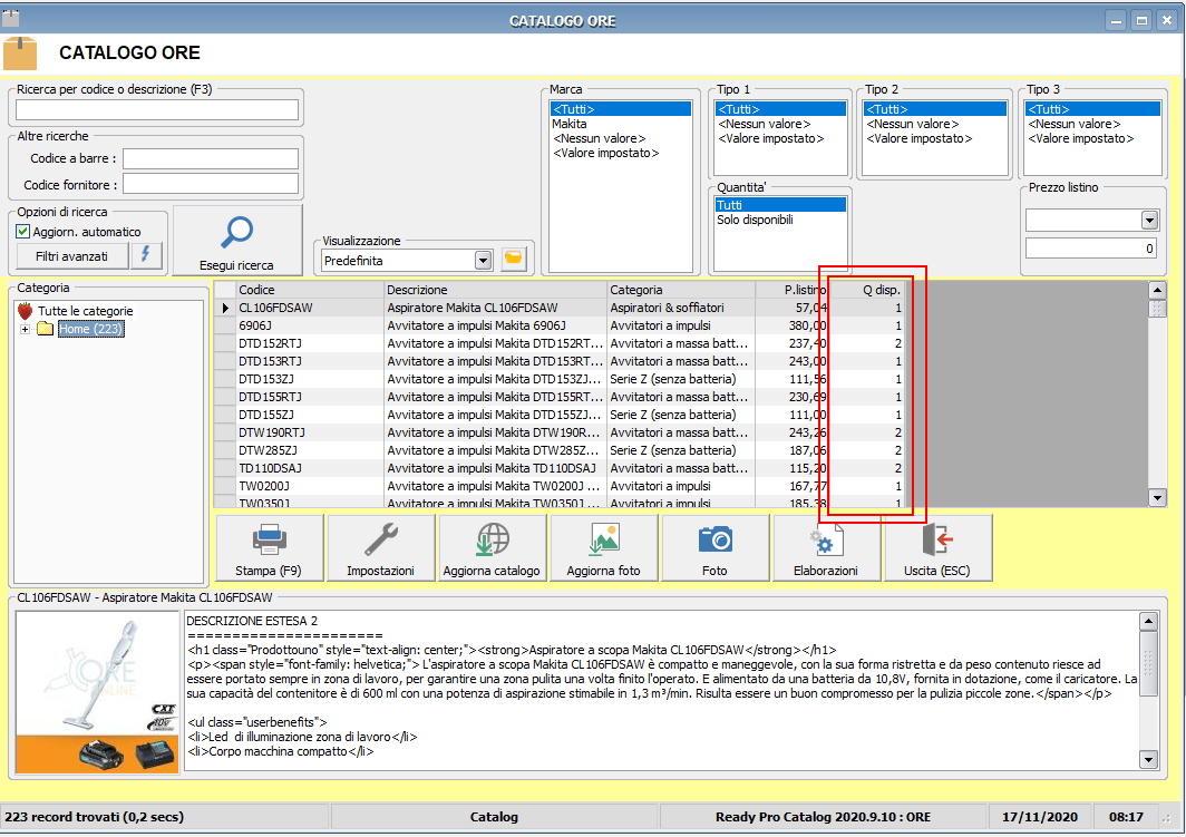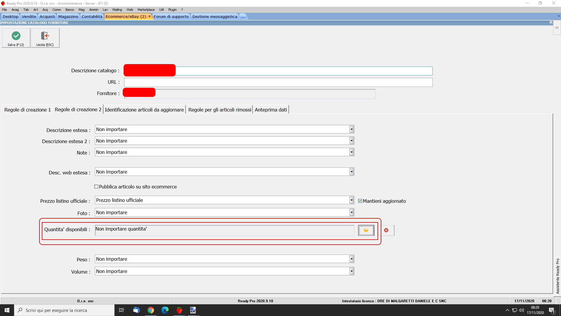 Per importare i prodotti da prestashop a ready pro, ovviamente utilizzo la funzione catalogo fornitore, che per assurdo visualizza correttamente le quantità, ma non mi è possibile scegliere se importare o meno le stesse. Come da screen shoot.