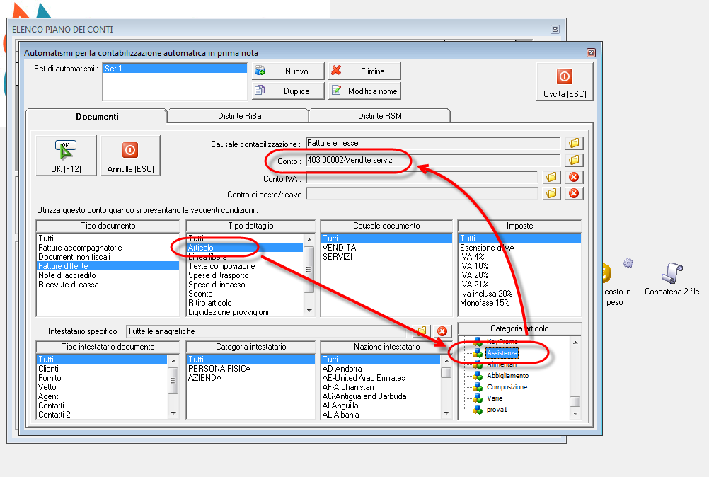 Ciao volevo chiedere se esiste la possibilità di associare ad un articolo una contropartita contabile specifica in Prima nota. Mi spiego con un esempio. Se fatturo un Hard disk ad un cliente o se lo acquisto da un fornitore, in prima nota viene registrato rispettivamente come merci c/vendite o merci c/acquisti. Se fatturo a cliente un servizio tipo "Canone annuale di assistenza......" anche in questo caso in prima nota la registrazione va su merci c/vendite, e quindi devo sbloccare la registrazione e cambiare il conto in Canoni annuali di assistenza. Questo mi è utile per avere nel conto economico la differenza tra i servizi emessi e la vendita delle merci, e tra i servizi ricevuti e l'acquisto delle merci. Qualora non ci fosse questa possibilità è possibile considerarla come futura implementazione? Grazie e buon lavoro.