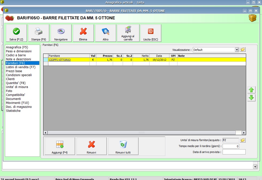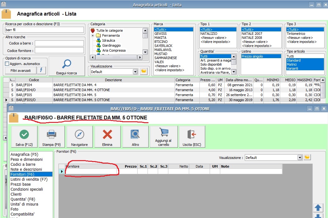 Da quando ho installato la nuova versione 2020.x ho riscontato un problema sull'anagrafica articoli. Effettuando una ricerca di una serie di articoli, nella visualizzazione della lista articoli mi compaiono i prezzi di acquisto minimo, medio e massimo e i nomi dei fornitori. Aprendo però l'anagrafica dell'articolo selezionato, nella sezione fornitori non compare niente. Uscendo dal form articolo (anche premendo il tasto ESC), anche nella visualizzazione della lista articoli vengolo azzerati i prezzi minimo, medio e massimo e viene cancellata anche la lista dei fornitori. Ho provato ad aprire dei vecchi backup aggiornando però il database alla nuova versione e anche questa volta succede la stessa cosa. Come devo fare per risolvere l'inconveniente?