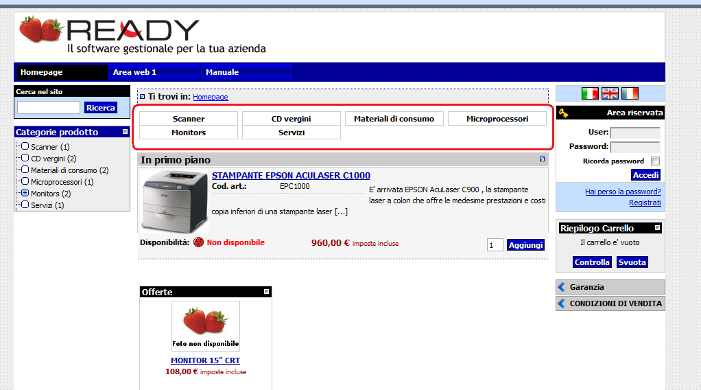 Nell'attesa che ti rispondano i miei colleghi dello staff tecnico, ti propongo un'idea "alternativa" per facilitare la ricerca prodotti ai tuoi utenti: Dentro Ready crei una categoria "stampanti" e codifichi tutte le stampanti. Ad ogni stampante, negli articoli collegati, associ i consumabili di riferimento. Utilizzi una delle opzioni disponibili per rendere le stampanti non ordinabili sul sito (per esempio "articolo sottoscorta" e imposti una scorta minima per le stampanti). Crei un'area web tipo "cerca per stampante".