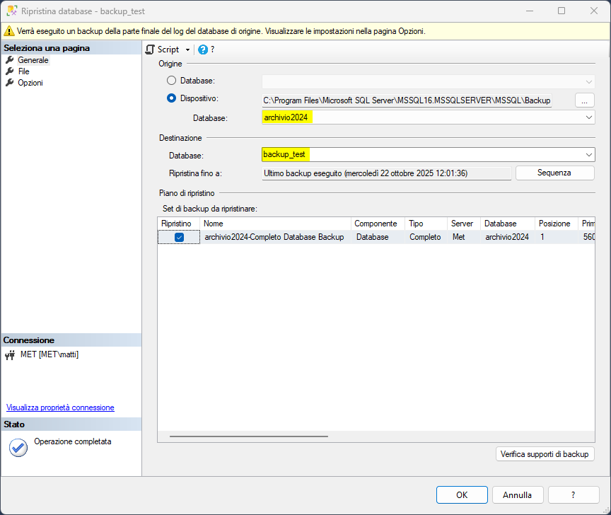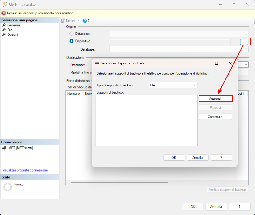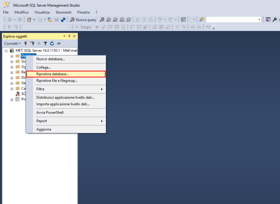 In passato, quando eseguivo modifiche più strutturali, salvavo manualmente l’archivio e, in caso di necessità, lo ripristinavo senza problemi. Con l’attuale sistema SQL, però, non mi è chiaro come procedere per il ripristino.