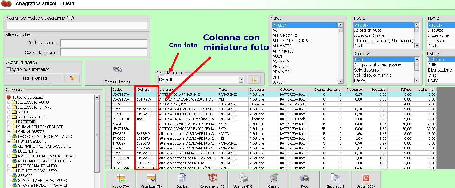 2) soprattutto non e' chiaro su quale procedura, visualizzazione o stampa vorrebbe vedere queste foto (perché' all'inizio parlava di ordini e fatture proforma e poi invece ha mostrato una finestra con la lista articoli