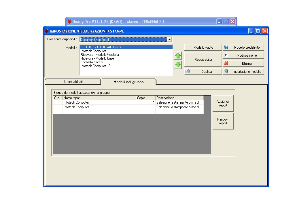 E' una cosa strana, perché anche reinstallando se riesci a stampare il primo foglio non cambierà nulla. Proviamo invece a fare gli stessi passi. Apri l'ultimo documento non fiscale: N. 3 del 19/03/2009 e premi su Stampa. Lascia selezionato Certificato di Garanzia e premi su OK. Premi ora su ANTEPRIMA (F2). Attendi che ti mostri il primo modello di stampa e premi su USCITA (ESC). A questo punto Ready ti fa la seconda domanda e premi anche qui ANTEPRIMA (F2). Attendi l'apertura del secondo modello di stampa.
