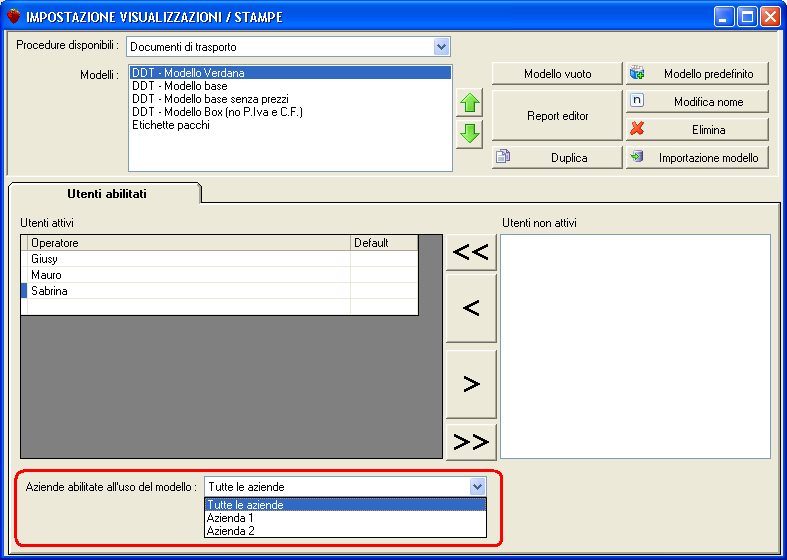 Ora posso " obbligare " a stampare ogni azienda con il proprio report editor, e inoltre posso " settare " che le stampe del DDT o quant'altro siano di default 2 copie anziche una ?????