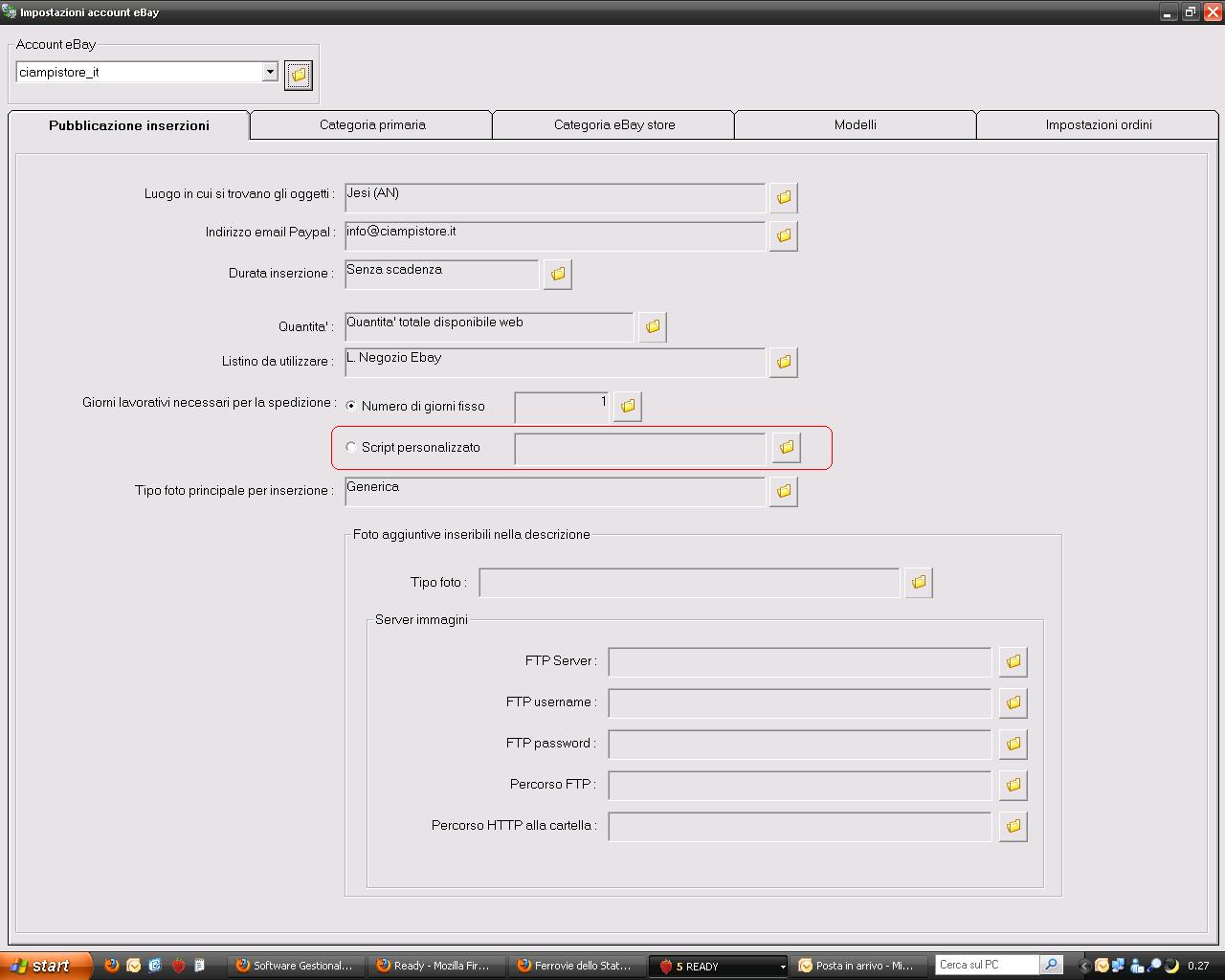 Citazione: 1. Aggiorna quantità 2. Aggiorna prezzi 3. Rimuovi inserzioni non più disponibili Lo script necessario e' gia' illustrato qui. http://www.readypro.it/scriptingreference/ebayaccount_executesync.htm Se non sai come installarlo/usarlo puoi richiedere un intervento in teleassistenza da parte di un nostro tecnico