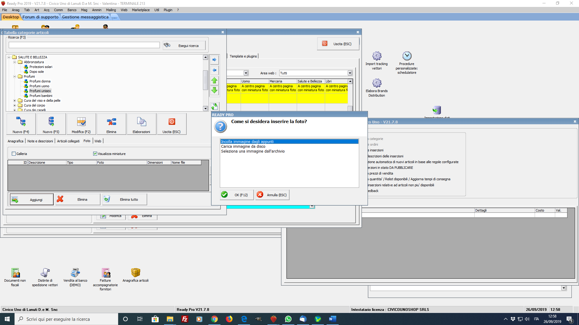 Riformula la domanda. Vorrei sapere come inserire le foto proprio come nella categoria abbigliamento riportata nello screen del vs esempio. Dove vanno caricate le immagini? Da quale archivio posso prenderle? La dimensione la crea Ready?