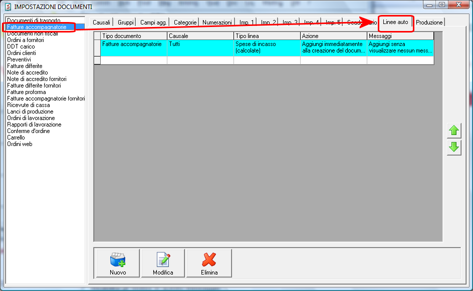 Sicuro di non aver inserito in UTIL / IMPOSTAZIONI DOCUMENTI / FATTURE DIFFERITE o ACCOMPAGNATORIE qualche LINEA AUTOMATICA?