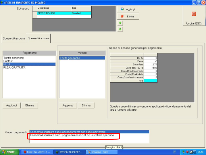 quindi come faccio per fare in modo che quando è impostato contanti nn venga addebitato niente e per la ri.ba. un fisso di 2,70? posso vedere una schermata giusta? grazie