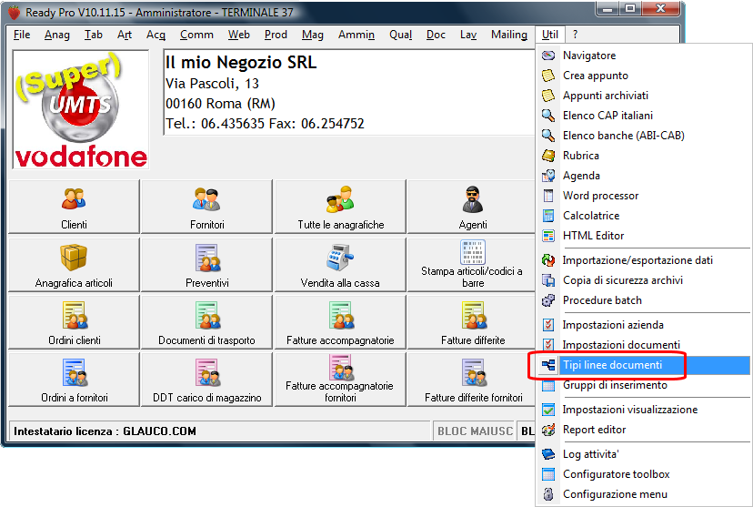 Se in UTIL non trovi la voce TIPI LINEE DOCUMENTI come indicato in figura allora entra in UTIL / CONFIGURATORE MENU / CONFIG PER PROCEDURA...