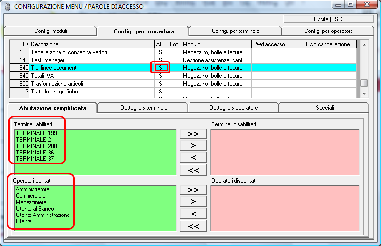 ... e verifica che quella procedura sia abilitata per gli utenti ed i terminali desiderati: