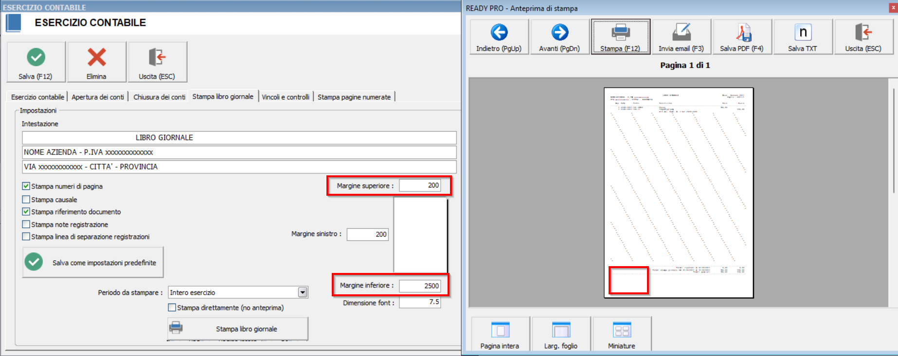 Nel mio screenshot metto un esempio di come potrebbe essere la configurazione, ma va fatta una prova con la vostra specifica stampante, perchè in base al driver possono esserci delle piccole differenze sui margini, e quindi va provata la stampa e verificato che lo spazio sia sufficiente, prima di procedere alla stampa di tutto