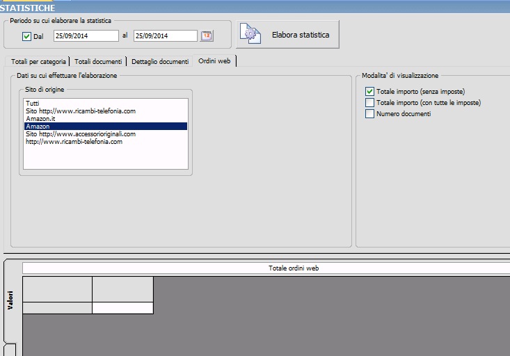 ciao! sto riscontrando anomalie nell’elaborare la statistica per gli ordini web. in pratica nella lista dei siti mi risulta 2 volte amazon(penso per via del vecchio plugin) e 2 volte anche il ns. sito principale. se vado in lista siti web invece mi risultano solo i ns. 2 siti, tutto regolare quindi.