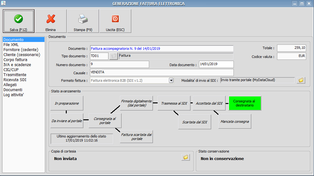 E' normale, potete stare tranquilli. La conservazione non viene fatta istantaneamente da nessun conservatore, e nemmeno dall'Agenzia delle Entrate. Vengono fatti dei "lotti" di fatture a posteriori, che vengono "timbrati" con un marcatore temporale e poi salvati. La maggior parte dei conservatori manda in conservazione le fatture alla fine dell'anno fiscale, ed alcune anche piu' tardi. Considera che per le fatture elettroniche emesse nel 2019 l'obbligo di conservazione puo' essere adempiuto, a rigor di legge, fino al 31 gennaio 2021.