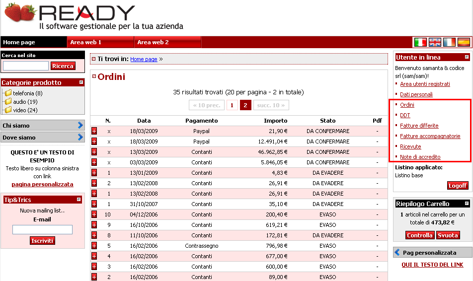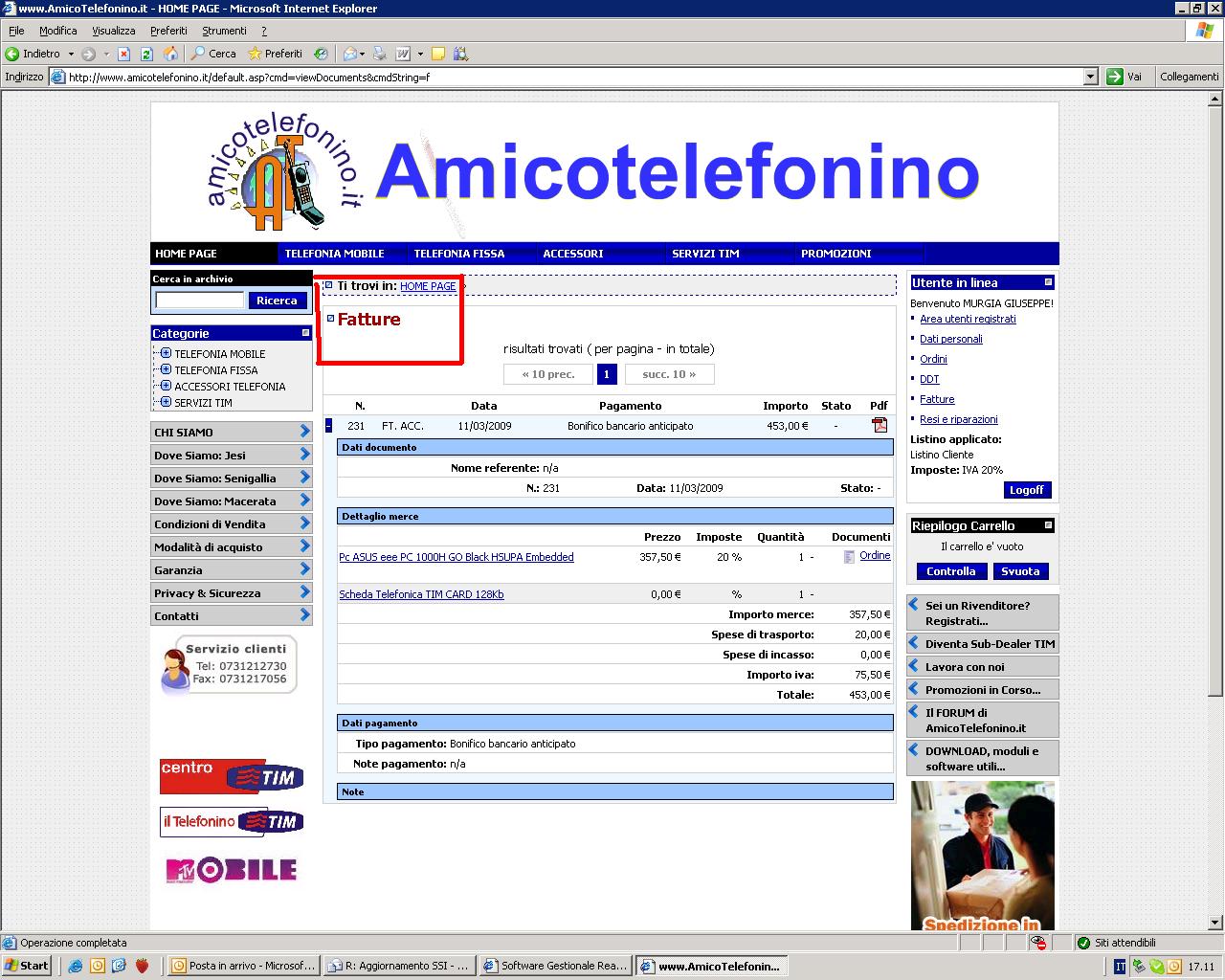 mentre sul sito entrando con user e psw del cliente continuo a vedere cosi :