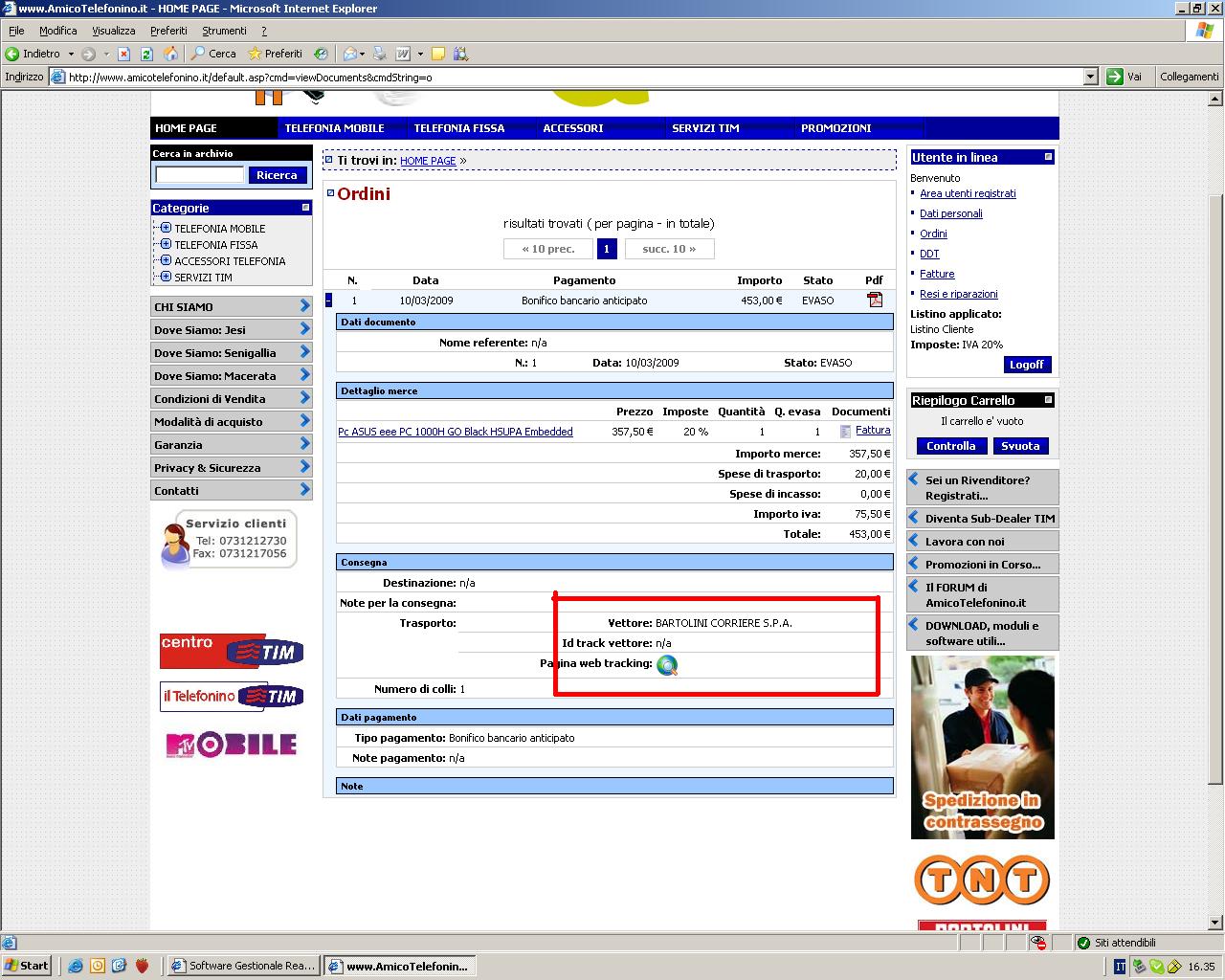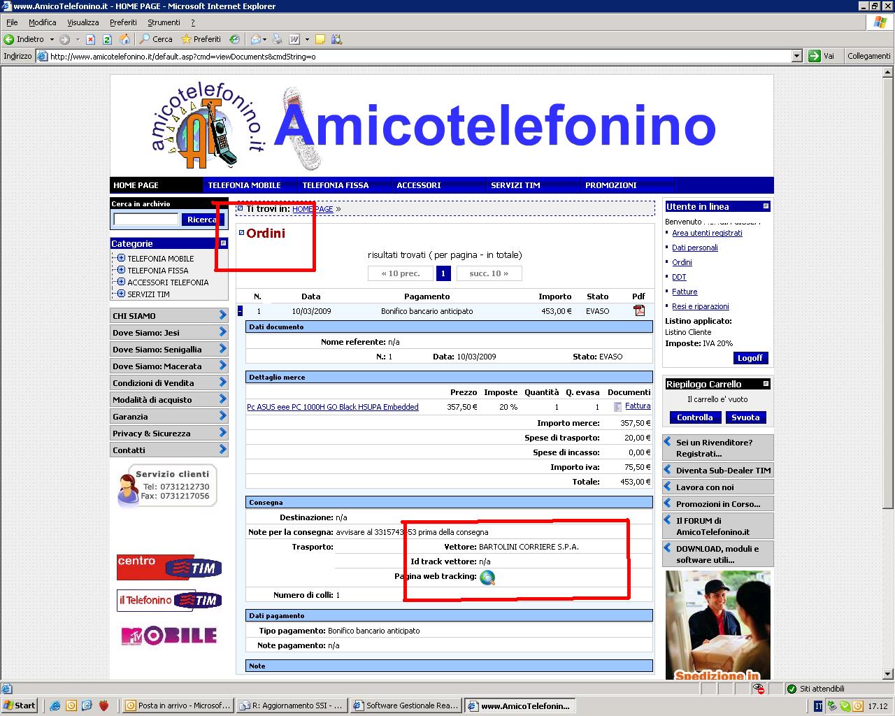 Questa è la vista ORDINI sempre da sito e come puoi vedere qui il tracking number neanche l'ombra !!!!!!!