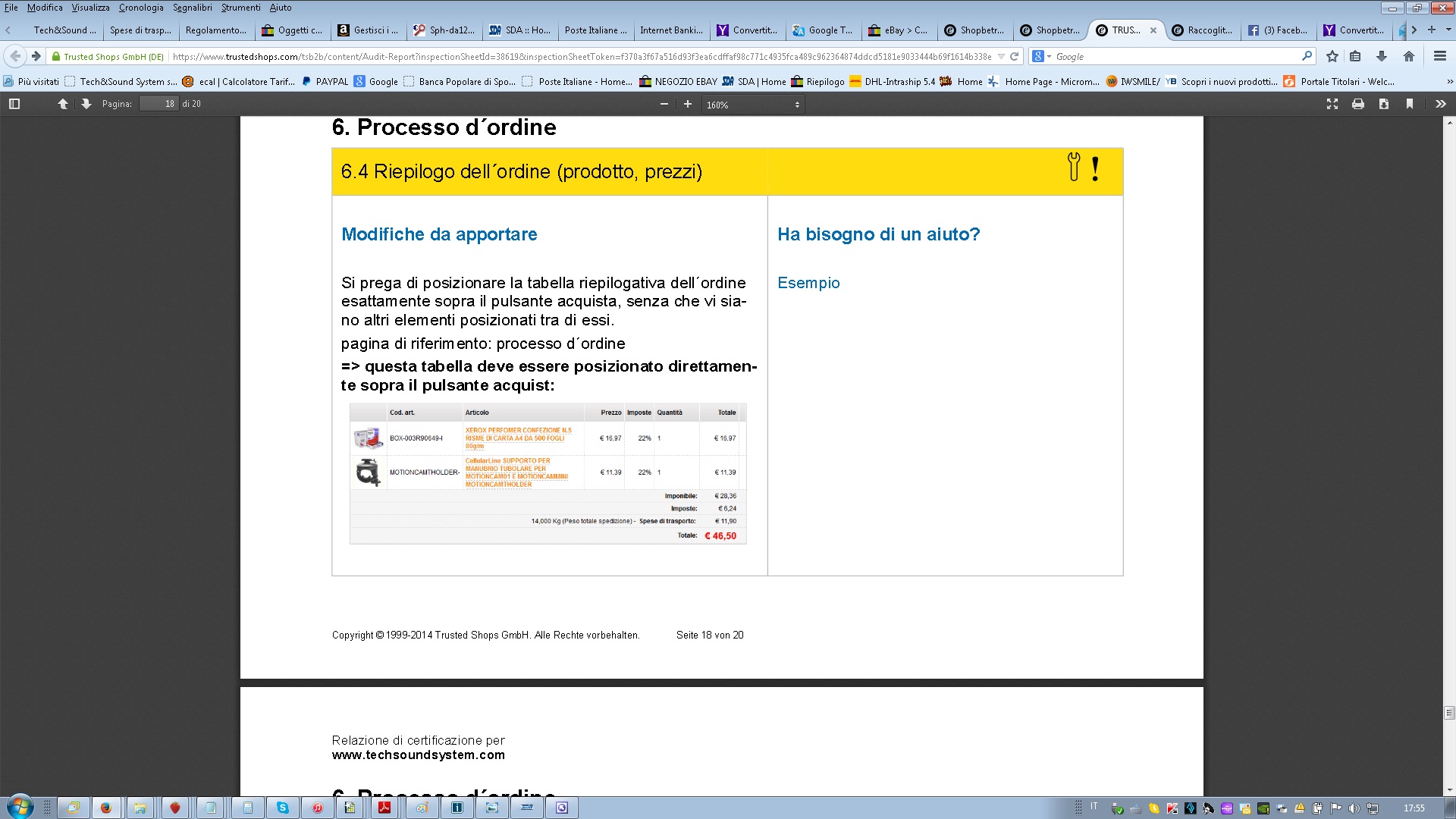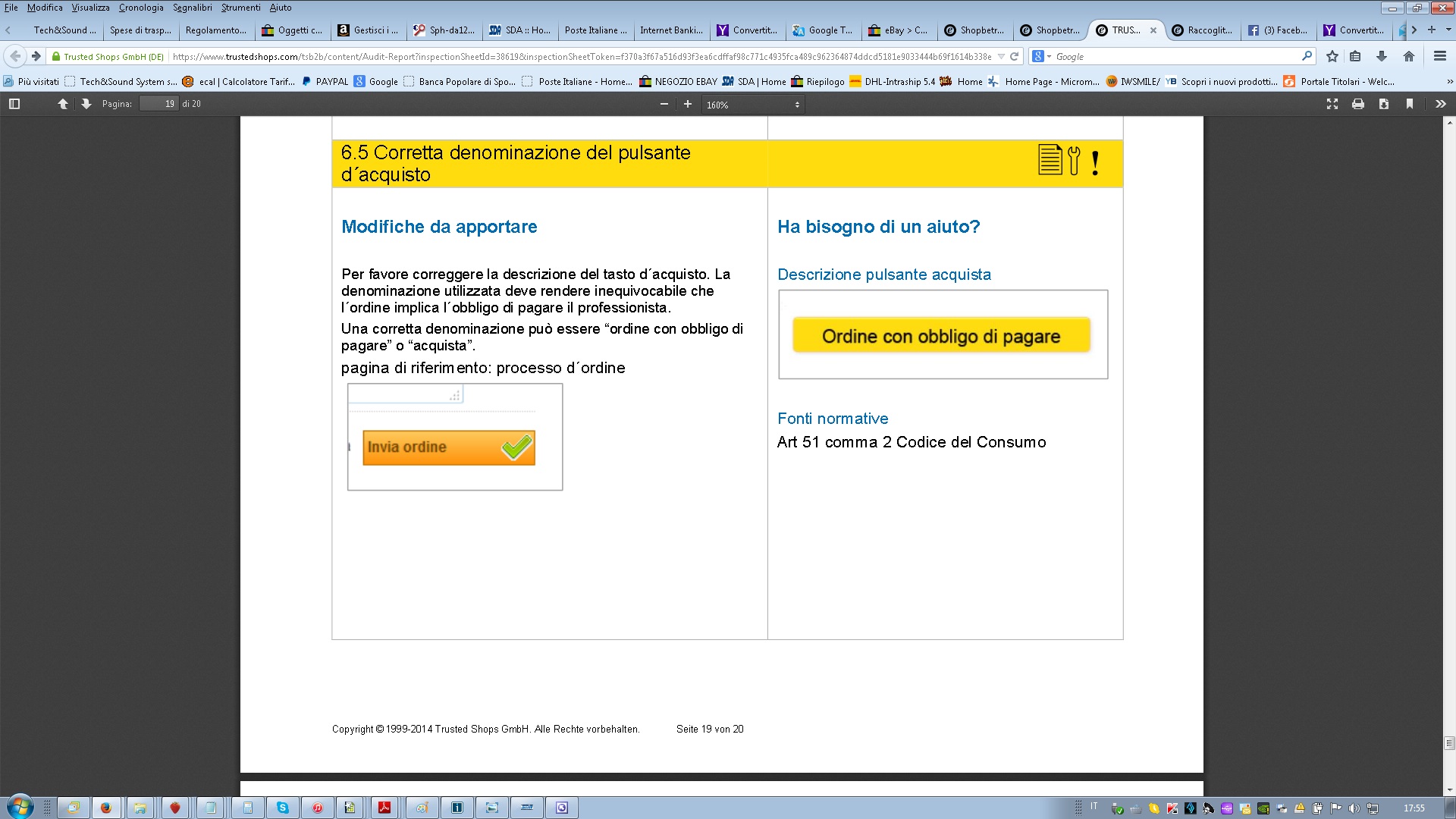Salve, il processo di certificazione di Trusted Shop (negozi premium) richiede alcune variazioni obbligatorie al mio shop (previste per legge, nuovo codice del consumo). In particolaremi chiedono di modificare: