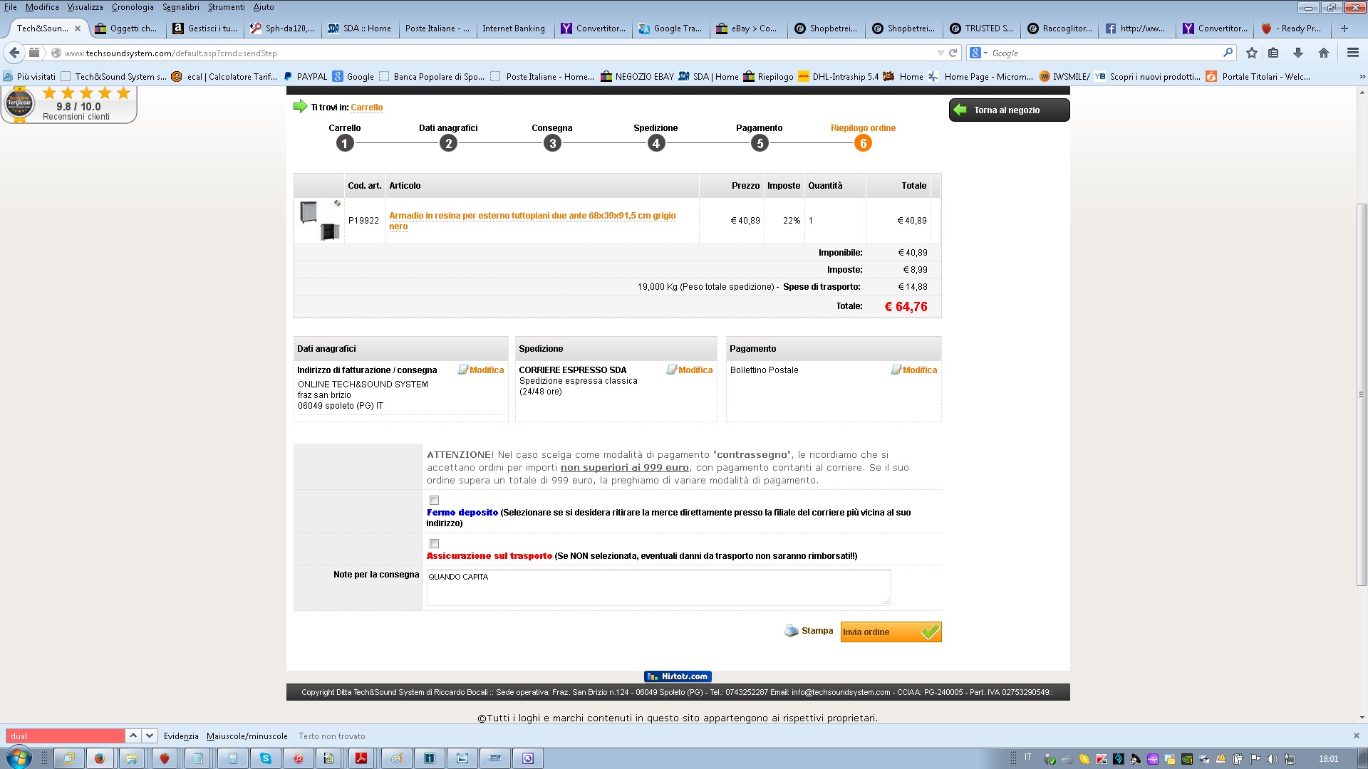 Sostituire quindi li tasto "invia ordine" con "Acquista e paga"