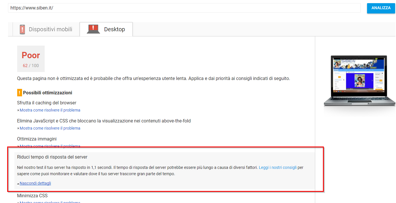 io ho confrontato invece i nostri competitor, ed hanno dei risultati nettamente superiori, non pretendiamo il 100% perché è un test con tantissime variabili, basterebbe anche un 50-60% visto che il nostro risultato su alcune pagine è 19/100 con un tempo di 22 secondi.
