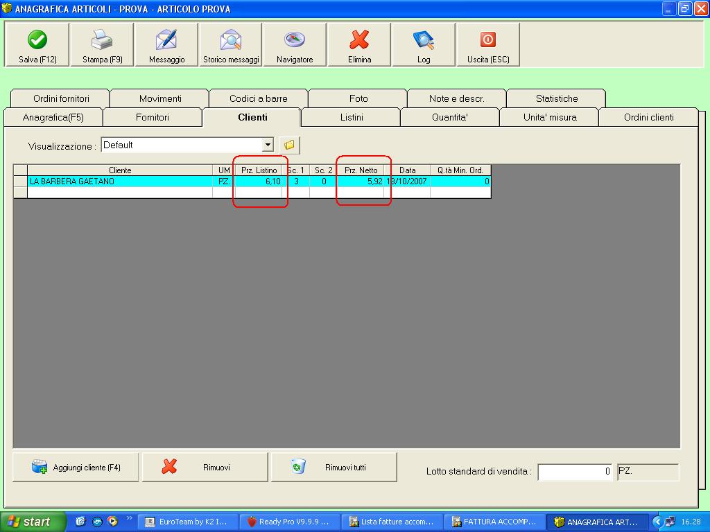 Ciao Fabio..Hai ragione quando dici che come ferramenta possiedo moltissimi articoli (pensa che oltre ferramenta tratto elettricità, idraulica, giardinaggio, colori)..Io come tu sai stò testando ready ma solo con 6, 7 articoli prova, qulache cliente e qualche fornitore. Mi fai sorgere il dubbio: QUANTO rallenta Ready appena gli carico addosso l'archiovio completo? Ritornando al mio problema: Alcuni clienti "speciali" hanno un trattamento differenziato su alcuni articoli , a prescindere dal loro listino. Ma perchè su ordini, preventivi, ddt, fatture posso tranquillamente impostarmi la griglia con i prezzi ivati e nel Tab inseriti dentro clienti/articoli NO? Significherebbe non utilizzare quei utilissimi Tab a meno che ogni volta usi la calcolatrice per scorporare l'iva...