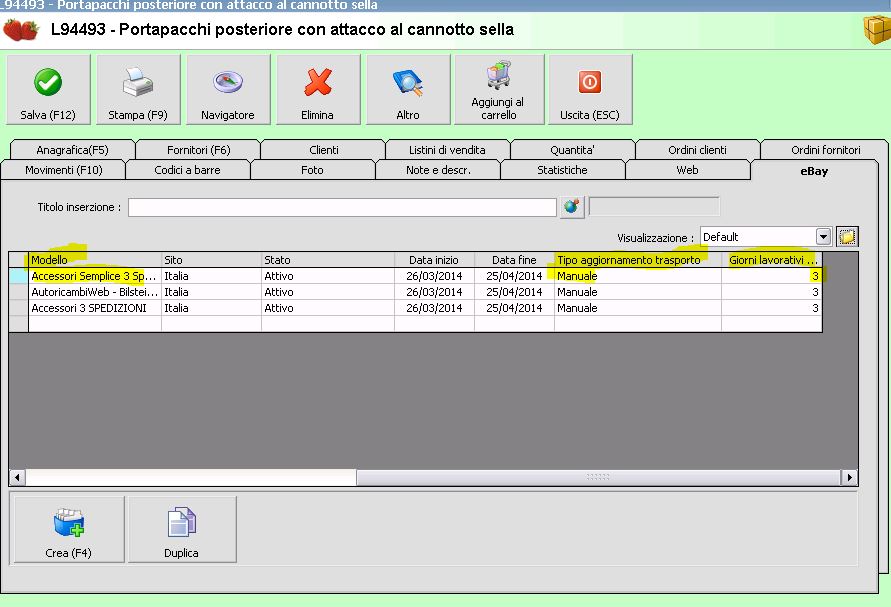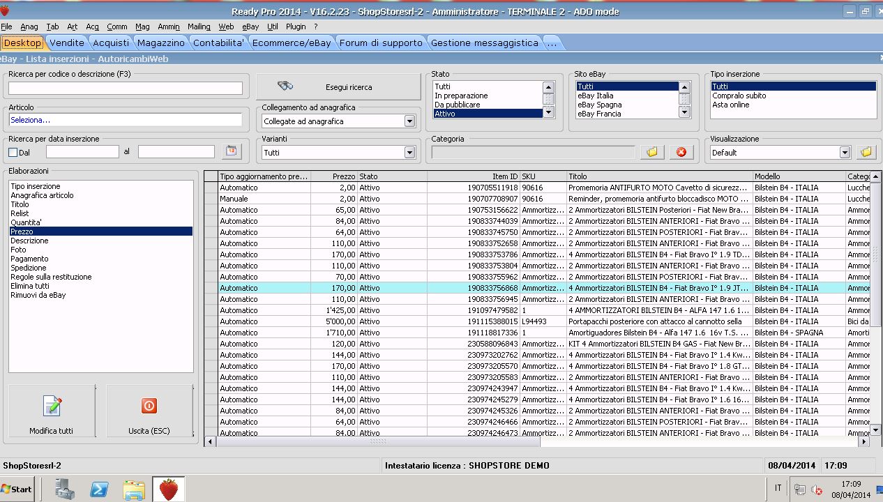 Abbiamo le Ns inserzioni su Ready a cui sono collegati le inserzioni ebay.