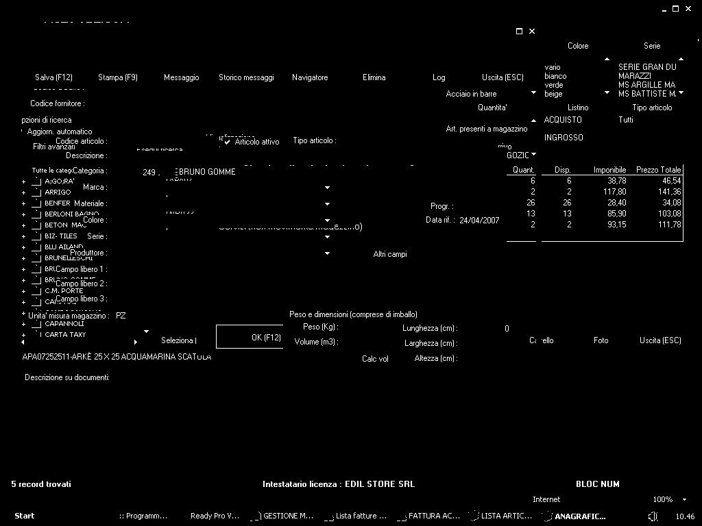 ho effettuato la ricostruzione archivio, non è successo nulla. non mi fa creare lo screen, ho riprovato chiudendo le finestre di ready ed incollare in paint,,guarda che esce fuori,,allegato,,,Fabio veramente URGENTE, non so cosa è potuto accadere, la ditta è ferma. Grazie. aspetto tue notizie,,p.s. io sono qui che aspetto.