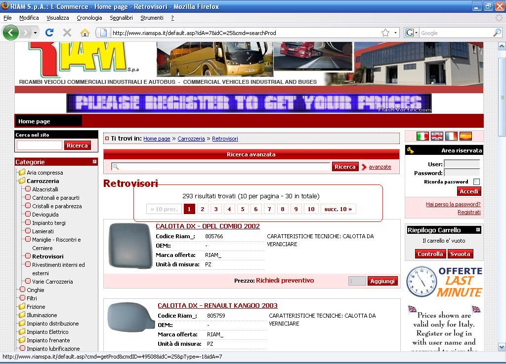 Se entro dentro una sottocategoria, es. categoria "carrozzeria " e ancora dentro la sottocategoria retrovisori, vedo la visualizzazione del numero di pagine contenute come da esempio allegato.
